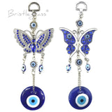 BRISTLEGRASS Turkish Blue Evil Eye Rhinestone Butterfly Wall Hanging Pendants Blessing Protection Gift